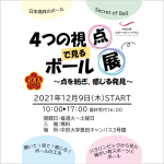 2021-12-09 / 最終更新日 : 2021-12-14 spmaster02 お知らせ 第5回企画展「4つの視点で見るボール展 ~点を紡ぎ、感じる発見~」開催中! 梅村学園創立100周年記念事業の一環である中京大学スポーツミュージアム第5回企画展「4つの視点で見るボール展 ~点を紡ぎ、感じる発見~」を開催中です。 当館自慢の500点以上におよぶボールコレクションの中から、学生が考案 […]